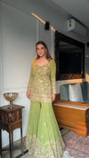 Designer Faux Georgette Top, Sharara and Dupatta Set with Heavy Embroidery Sequence Work