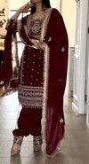Designer Long Punjabi Suit Set with Farshi Salwar & Embroidered Dupatta