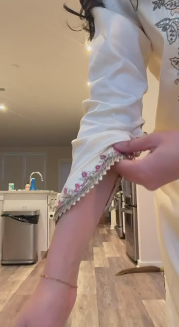 Premium French crepe fabric with embroidery thread work, complemented by a GMY silk dupatta with lace border. Designed with clean stitching and a comfortable fit, offering a polished and elegant ethnic look.