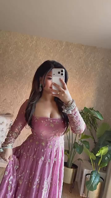 Step into elegance with our premium designer partywear gown set, crafted for weddings, receptions, festivities, and all grand celebrations. Made from luxurious Heavy Fandy Silk and detailed with intricate embroidery and sequin work, this outfit blends classic grace with modern sophistication.