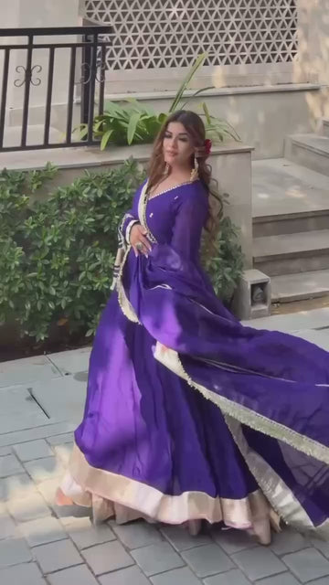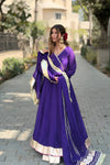 Festive Wear Purple Zari Embroidered Anarkali Sharara Suit Set for Women