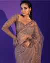 Net saree with sequins, dori and zari work, finished with jhalar border