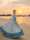 An elegant party-wear ensemble crafted in flowing faux georgette, paired with a delicately embroidered organza dupatta and a comfortable bottom, designed for a graceful and statement look.